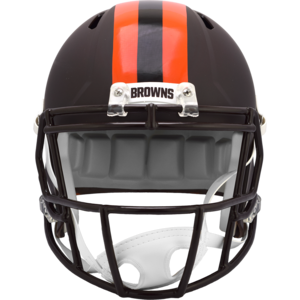 Based on one of the most popular on-field alternate designs, this collectible Speed Replica football helmet is made specifically for fans of the Cleveland Browns. At approx. 9.5 in. tall, this replica size display helmet is perfect for all football fans and great for autographs. The helmet features a medium size Speed shell, the S2BD-SW-SP face mask, a 4-point chinstrap, and official paint and decals. The perfect collectible or gift! SKU: 8059989