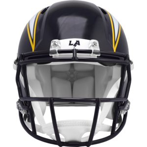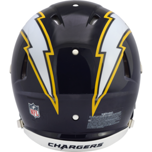 Based on one of the most popular on-field alternate designs, this collectible Speed Authentic football helmet is made specifically for fans of the Los Angeles Chargers. At approx. 11 in. tall, this authentic size display helmet is perfect for all football fans and great for autographs. The helmet features a large size Speed shell, the S2BD-SW-SP face mask, a 4-point chinstrap, and official paint and decals. The perfect collectible or gift! SKU: 8059992