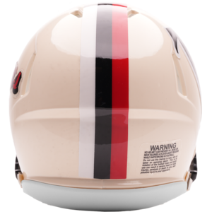 Based on one of the most popular on-field designs, this Speed Mini football helmet is made specifically for fans of the Atlanta Falcons and blends modern performance with classic style. Part of the Retro Collection, it draws inspiration from the 70s and 80s, honoring the team’s historic past with a cream gloss shell finish, team-colored face mask, and a three-color top stripe in team colors. The team logo appears on the right side of the helmet, while the team name is displayed on the left in a retro-inspired font. At approximately 5.5 inches tall, this authentic-size display helmet is perfect for football fans and ideal for autographs. It features a mini Speed shell, S2BD-SW-SP face mask, 4-point chinstrap, and official paint and decals, making it a standout piece for collectors and fans who appreciate a touch of nostalgia in their game-day style. The perfect collectible or gift! SKU: 8060364