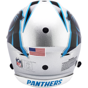 Based on our most popular on-field design, this collectible SpeedFlex Authentic football helmet is made specifically for fans of the Carolina Panthers. At approx. 11 in. tall, this authentic size display helmet is perfect for all football fans and great for autographs. The helmet features a large size SpeedFlex shell and padding, the SF2BD-SW-SP face mask, a 4-point chinstrap with Cam-Loc attachment, Quick-Release facemask attachment system, and official paint and decals. It is not to be used for play. The perfect collectible or gift! SKU: 8055803
