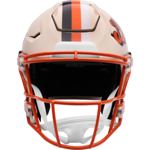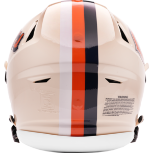 Based on one of the most popular on-field designs, this SpeedFlex Authentic football helmet is made specifically for fans of the Chicago Bears and blends modern performance with classic style. Part of the Retro Collection, it draws inspiration from the 70s and 80s, honoring the team’s historic past with a cream gloss shell finish, team-colored face mask, and a three-color top stripe in team colors. The team logo appears on the right side of the helmet, while the team name is displayed on the left in a retro-inspired font. At approximately 11 inches tall, this authentic-size display helmet is perfect for football fans and ideal for autographs. It features a large SpeedFlex shell, S2BD-SW-SP face mask, 4-point chinstrap, and official paint and decals, making it a standout piece for collectors and fans who appreciate a touch of nostalgia in their game-day style. The perfect collectible or gift! SKU: 8060247