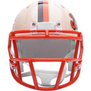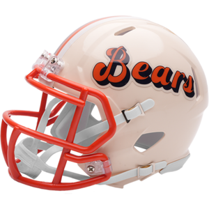 Based on one of the most popular on-field designs, this Speed Mini football helmet is made specifically for fans of the Chicago Bears and blends modern performance with classic style. Part of the Retro Collection, it draws inspiration from the 70s and 80s, honoring the team’s historic past with a cream gloss shell finish, team-colored face mask, and a three-color top stripe in team colors. The team logo appears on the right side of the helmet, while the team name is displayed on the left in a retro-inspired font. At approximately 5.5 inches tall, this authentic-size display helmet is perfect for football fans and ideal for autographs. It features a mini Speed shell, S2BD-SW-SP face mask, 4-point chinstrap, and official paint and decals, making it a standout piece for collectors and fans who appreciate a touch of nostalgia in their game-day style. The perfect collectible or gift! SKU: 8060350