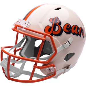 Based on one of the most popular on-field designs, this Speed Replica football helmet is made specifically for fans of the Chicago Bears and blends modern performance with classic style. Part of the Retro Collection, it draws inspiration from the 70s and 80s, honoring the team’s historic past with a cream gloss shell finish, team-colored face mask, and a three-color top stripe in team colors. The team logo appears on the right side of the helmet, while the team name is displayed on the left in a retro-inspired font. At approximately 9.5 inches tall, this authentic-size display helmet is perfect for football fans and ideal for autographs. It features a medium Speed shell, S2BD-SW-SP face mask, 4-point chinstrap, and official paint and decals, making it a standout piece for collectors and fans who appreciate a touch of nostalgia in their game-day style. The perfect collectible or gift! SKU: 8060314