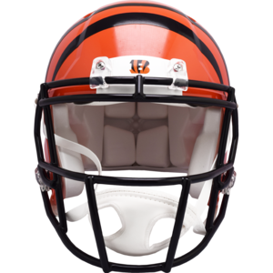Based on one of the most popular on-field designs, this collectible Speed Authentic football helmet is made specifically for fans of the Cincinnati Bengals. At approx. 11 in. tall, this authentic size display helmet is perfect for all football fans and great for autographs. The helmet features a large size Speed shell, the S2BD-SW-SP face mask, a 4-point chinstrap, and official paint and decals. It is not to be used for play. The perfect collectible or gift! SKU: 3001630