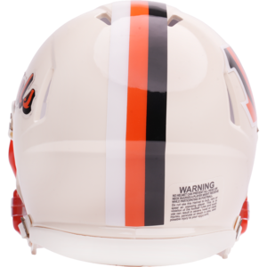 Based on one of the most popular on-field designs, this Speed Mini football helmet is made specifically for fans of the Cincinnati Bengals and blends modern performance with classic style. Part of the Retro Collection, it draws inspiration from the 70s and 80s, honoring the team’s historic past with a cream gloss shell finish, team-colored face mask, and a three-color top stripe in team colors. The team logo appears on the right side of the helmet, while the team name is displayed on the left in a retro-inspired font. At approximately 5.5 inches tall, this authentic-size display helmet is perfect for football fans and ideal for autographs. It features a mini Speed shell, S2BD-SW-SP face mask, 4-point chinstrap, and official paint and decals, making it a standout piece for collectors and fans who appreciate a touch of nostalgia in their game-day style. The perfect collectible or gift! SKU: 8060351