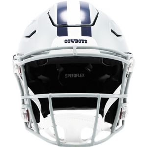 Based on our most popular on-field design, this collectible SpeedFlex Authentic football helmet is made specifically for fans of the Dallas Cowboys. At approx. 11 in. tall, this authentic size display helmet is perfect for all football fans and great for autographs. The helmet features a large size SpeedFlex shell and padding, the SF2BD-SW-SP face mask, a 4-point chinstrap with Cam-Loc attachment, Quick-Release facemask attachment system, and official paint and decals. It is not to be used for play. The perfect collectible or gift! SKU: 8055792
