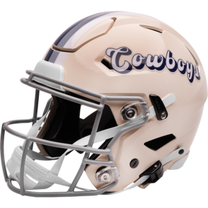 Based on one of the most popular on-field designs, this SpeedFlex Authentic football helmet is made specifically for fans of the Dallas Cowboys and blends modern performance with classic style. Part of the Retro Collection, it draws inspiration from the 70s and 80s, honoring the team’s historic past with a cream gloss shell finish, team-colored face mask, and a three-color top stripe in team colors. The team logo appears on the right side of the helmet, while the team name is displayed on the left in a retro-inspired font. At approximately 11 inches tall, this authentic-size display helmet is perfect for football fans and ideal for autographs. It features a large SpeedFlex shell, S2BD-SW-SP face mask, 4-point chinstrap, and official paint and decals, making it a standout piece for collectors and fans who appreciate a touch of nostalgia in their game-day style. The perfect collectible or gift! SKU: 8060258