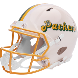 Based on one of the most popular on-field designs, this Speed Authentic football helmet is made specifically for fans of the Green Bay Packers and blends modern performance with classic style. Part of the Retro Collection, it draws inspiration from the 70s and 80s, honoring the team’s historic past with a cream gloss shell finish, team-colored face mask, and a three-color top stripe in team colors. The team logo appears on the right side of the helmet, while the team name is displayed on the left in a retro-inspired font. At approximately 11 inches tall, this authentic-size display helmet is perfect for football fans and ideal for autographs. It features a large Speed shell, S2BD-SW-SP face mask, 4-point chinstrap, and official paint and decals, making it a standout piece for collectors and fans who appreciate a touch of nostalgia in their game-day style. The perfect collectible or gift! SKU: 8060300