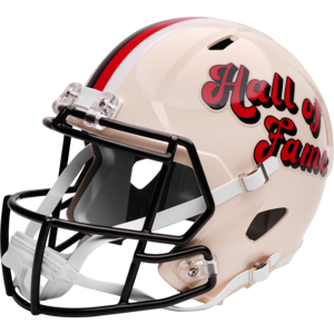 Based on one of the most popular on-field designs, this Speed Replica football helmet is made specifically for fans of the Hall of Fame and blends modern performance with classic style. Part of the Retro Collection, it draws inspiration from the 70s and 80s, honoring the team’s historic past with a cream gloss shell finish, team-colored face mask, and a three-color top stripe in team colors. The team logo appears on the right side of the helmet, while the team name is displayed on the left in a retro-inspired font. At approximately 9.5 inches tall, this authentic-size display helmet is perfect for football fans and ideal for autographs. It features a medium Speed shell, S2BD-SW-SP face mask, 4-point chinstrap, and official paint and decals, making it a standout piece for collectors and fans who appreciate a touch of nostalgia in their game-day style. The perfect collectible or gift! SKU: 8060345