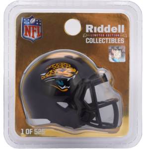 The Jacksonville Jaguars Limited Edition Throwback Pocket Size Helmet features a black shell, black facemask and throwback Jaguars marks on both sides. The team wore this helmet on-field from 1995 to 2012 and have started wearing it again in recent years with their Prowler Throwback uniform. This helmet is available exclusively on Riddell.com. Features: