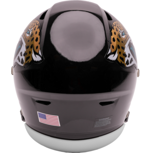 Based on one of the most popular on-field designs, this collectible Mid-Size SpeedFlex football helmet is made specifically for fans of the Jacksonville Jaguars. At approx. 7.5 in. tall, this mid-size display helmet is perfect for all football fans and great for autographs. The helmet features a mid-size SpeedFlex shell, a SF-2BD-SW face mask, a 4-point soft cup chinstrap, a visor, and official paint and decals. The perfect collectible or gift! SKU: 8060045