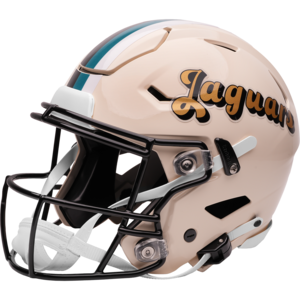 Based on one of the most popular on-field designs, this SpeedFlex Authentic football helmet is made specifically for fans of the Jacksonville Jaguars and blends modern performance with classic style. Part of the Retro Collection, it draws inspiration from the 70s and 80s, honoring the team’s historic past with a cream gloss shell finish, team-colored face mask, and a three-color top stripe in team colors. The team logo appears on the right side of the helmet, while the team name is displayed on the left in a retro-inspired font. At approximately 11 inches tall, this authentic-size display helmet is perfect for football fans and ideal for autographs. It features a large SpeedFlex shell, S2BD-SW-SP face mask, 4-point chinstrap, and official paint and decals, making it a standout piece for collectors and fans who appreciate a touch of nostalgia in their game-day style. The perfect collectible or gift! SKU: 8060263