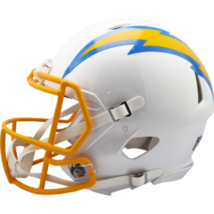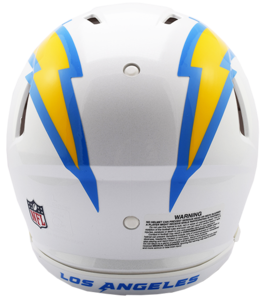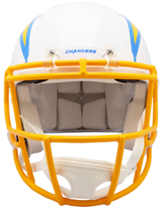 Based on one of the most popular on-field designs, this collectible Speed Authentic football helmet is made specifically for fans of the Los Angeles Chargers. At approx. 11 in. tall, this authentic size display helmet is perfect for all football fans and great for autographs. The helmet features a large size Speed shell, the S2BD-SW-SP face mask, a 4-point chinstrap, and official paint and decals. It is not to be used for play. The perfect collectible or gift! SKU: 8056530