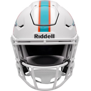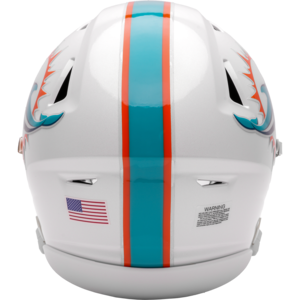 Based on one of the most popular on-field designs, this collectible Mid-Size SpeedFlex football helmet is made specifically for fans of the Miami Dolphins. At approx. 7.5 in. tall, this mid-size display helmet is perfect for all football fans and great for autographs. The helmet features a mid-size SpeedFlex shell, a SF-2BD-SW face mask, a 4-point soft cup chinstrap, a visor, and official paint and decals. The perfect collectible or gift! SKU: 8060043