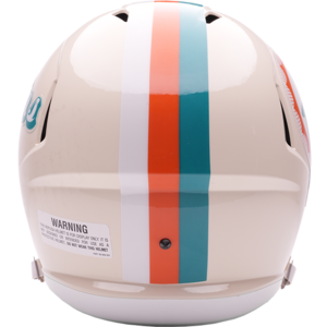 Based on one of the most popular on-field designs, this Speed Authentic football helmet is made specifically for fans of the Miami Dolphins and blends modern performance with classic style. Part of the Retro Collection, it draws inspiration from the 70s and 80s, honoring the team’s historic past with a cream gloss shell finish, team-colored face mask, and a three-color top stripe in team colors. The team logo appears on the right side of the helmet, while the team name is displayed on the left in a retro-inspired font. At approximately 11 inches tall, this authentic-size display helmet is perfect for football fans and ideal for autographs. It features a large Speed shell, S2BD-SW-SP face mask, 4-point chinstrap, and official paint and decals, making it a standout piece for collectors and fans who appreciate a touch of nostalgia in their game-day style. The perfect collectible or gift! SKU: 8060293