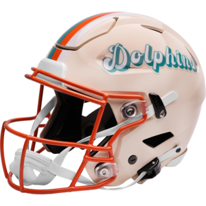 Based on one of the most popular on-field designs, this SpeedFlex Authentic football helmet is made specifically for fans of the Miami Dolphins and blends modern performance with classic style. Part of the Retro Collection, it draws inspiration from the 70s and 80s, honoring the team’s historic past with a cream gloss shell finish, team-colored face mask, and a three-color top stripe in team colors. The team logo appears on the right side of the helmet, while the team name is displayed on the left in a retro-inspired font. At approximately 11 inches tall, this authentic-size display helmet is perfect for football fans and ideal for autographs. It features a large SpeedFlex shell, S2BD-SW-SP face mask, 4-point chinstrap, and official paint and decals, making it a standout piece for collectors and fans who appreciate a touch of nostalgia in their game-day style. The perfect collectible or gift! SKU: 8060259