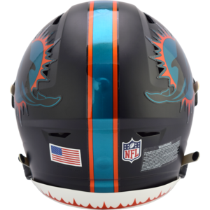 Based on our most popular on-field alternate design, this collectible SpeedFlex Authentic football helmet is made specifically for fans of the Miami Dolphins. At approx. 11 in. tall, this replica size display helmet is perfect for all football fans and great for autographs. The helmet features a large size Speedflex shell, the S2BD-SW-SP face mask, a 4-point chinstrap, and official paint and decals. The perfect collectible or gift! SKU: 8059967