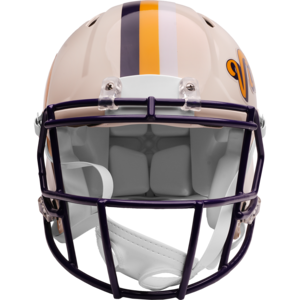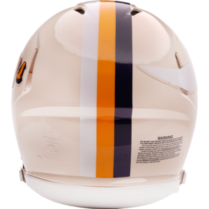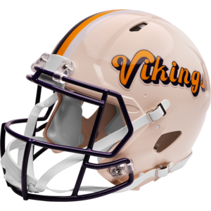 Based on one of the most popular on-field designs, this Speed Authentic football helmet is made specifically for fans of the Minnesota Vikings and blends modern performance with classic style. Part of the Retro Collection, it draws inspiration from the 70s and 80s, honoring the team’s historic past with a cream gloss shell finish, team-colored face mask, and a three-color top stripe in team colors. The team logo appears on the right side of the helmet, while the team name is displayed on the left in a retro-inspired font. At approximately 11 inches tall, this authentic-size display helmet is perfect for football fans and ideal for autographs. It features a large Speed shell, S2BD-SW-SP face mask, 4-point chinstrap, and official paint and decals, making it a standout piece for collectors and fans who appreciate a touch of nostalgia in their game-day style. The perfect collectible or gift! SKU: 8060310