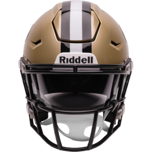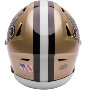 Based on one of the most popular on-field designs, this collectible Mid-Size SpeedFlex football helmet is made specifically for fans of the New Orleans Saints. At approx. 7.5 in. tall, this mid-size display helmet is perfect for all football fans and great for autographs. The helmet features a mid-size SpeedFlex shell, a SF-2BD-SW face mask, a 4-point soft cup chinstrap, a visor, and official paint and decals. The perfect collectible or gift! SKU: 8060054
