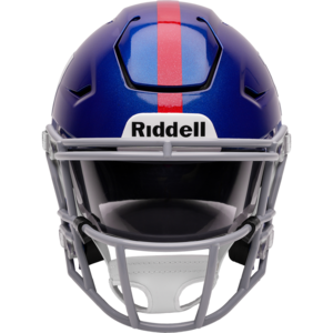 Based on one of the most popular on-field designs, this collectible Mid-Size SpeedFlex football helmet is made specifically for fans of the New York Giants. At approx. 7.5 in. tall, this mid-size display helmet is perfect for all football fans and great for autographs. The helmet features a mid-size SpeedFlex shell, a SF-2BD-SW face mask, a 4-point soft cup chinstrap, a visor, and official paint and decals. The perfect collectible or gift! SKU: 8060044