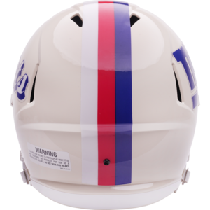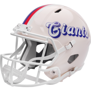 Based on one of the most popular on-field designs, this Speed Replica football helmet is made specifically for fans of the New York Giants and blends modern performance with classic style. Part of the Retro Collection, it draws inspiration from the 70s and 80s, honoring the team’s historic past with a cream gloss shell finish, team-colored face mask, and a three-color top stripe in team colors. The team logo appears on the right side of the helmet, while the team name is displayed on the left in a retro-inspired font. At approximately 9.5 inches tall, this authentic-size display helmet is perfect for football fans and ideal for autographs. It features a medium Speed shell, S2BD-SW-SP face mask, 4-point chinstrap, and official paint and decals, making it a standout piece for collectors and fans who appreciate a touch of nostalgia in their game-day style. The perfect collectible or gift! SKU: 8060329
