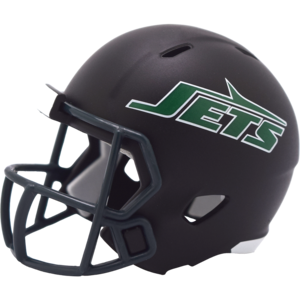 The New York Jets Limited Edition On-Field Alternate Pocket Size Helmet features a black shell, forest green facemask and Jets logos. This helmet was first worn by the team in 2024. This helmet is available exclusively on Riddell.com. Features: