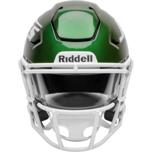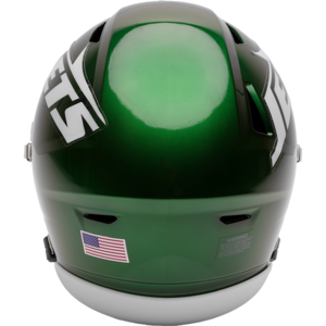 Based on one of the most popular on-field designs, this collectible Mid-Size SpeedFlex football helmet is made specifically for fans of the New York Jets. At approx. 7.5 in. tall, this mid-size display helmet is perfect for all football fans and great for autographs. The helmet features a mid-size SpeedFlex shell, a SF-2BD-SW face mask, a 4-point soft cup chinstrap, a visor, and official paint and decals. The perfect collectible or gift! SKU: 8060046
