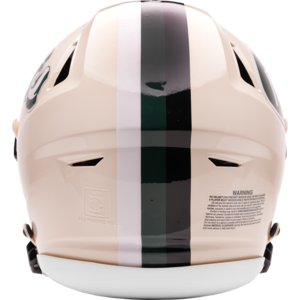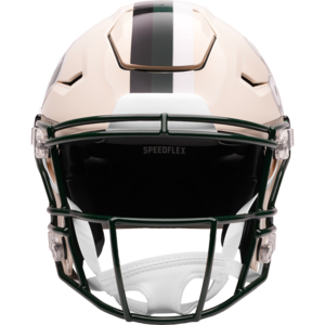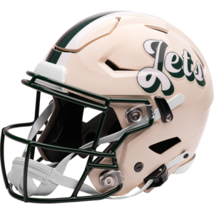 Based on one of the most popular on-field designs, this SpeedFlex Authentic football helmet is made specifically for fans of the New York Jets and blends modern performance with classic style. Part of the Retro Collection, it draws inspiration from the 70s and 80s, honoring the team’s historic past with a cream gloss shell finish, team-colored face mask, and a three-color top stripe in team colors. The team logo appears on the right side of the helmet, while the team name is displayed on the left in a retro-inspired font. At approximately 11 inches tall, this authentic-size display helmet is perfect for football fans and ideal for autographs. It features a large SpeedFlex shell, S2BD-SW-SP face mask, 4-point chinstrap, and official paint and decals, making it a standout piece for collectors and fans who appreciate a touch of nostalgia in their game-day style. The perfect collectible or gift! SKU: 8060264