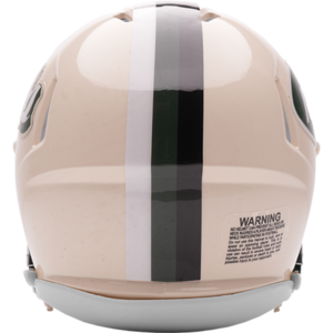 Based on one of the most popular on-field designs, this Speed Mini football helmet is made specifically for fans of the New York Jets and blends modern performance with classic style. Part of the Retro Collection, it draws inspiration from the 70s and 80s, honoring the team’s historic past with a cream gloss shell finish, team-colored face mask, and a three-color top stripe in team colors. The team logo appears on the right side of the helmet, while the team name is displayed on the left in a retro-inspired font. At approximately 5.5 inches tall, this authentic-size display helmet is perfect for football fans and ideal for autographs. It features a mini Speed shell, S2BD-SW-SP face mask, 4-point chinstrap, and official paint and decals, making it a standout piece for collectors and fans who appreciate a touch of nostalgia in their game-day style. The perfect collectible or gift! SKU: 8060367