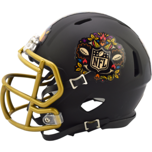 Based on one of the most popular on-field designs, this collectible Speed Mini football helmet is made specifically for fans of the NFL. The Hasta la Muerte collection honors the families and friends that instilled the love for football on others which ultimately led them to becoming an NFL fan. The meaningful expression “NFL Hasta la Muerte” signifies that that they will be an NFL fan till death. At approx. 5.5 in. tall, this half-scale display helmet is perfect for all football fans and great for autographs. The helmet features a mini size Speed shell, the S2BD-SW-SP face mask, a 4-point chinstrap, and official paint and decals. The perfect collectible or gift! SKU: 8060211