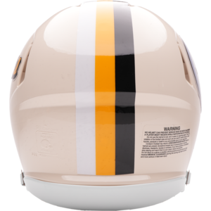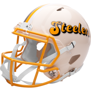 Based on one of the most popular on-field designs, this Speed Authentic football helmet is made specifically for fans of the Pittsburgh Steelers and blends modern performance with classic style. Part of the Retro Collection, it draws inspiration from the 70s and 80s, honoring the team’s historic past with a cream gloss shell finish, team-colored face mask, and a three-color top stripe in team colors. The team logo appears on the right side of the helmet, while the team name is displayed on the left in a retro-inspired font. At approximately 11 inches tall, this authentic-size display helmet is perfect for football fans and ideal for autographs. It features a large Speed shell, S2BD-SW-SP face mask, 4-point chinstrap, and official paint and decals, making it a standout piece for collectors and fans who appreciate a touch of nostalgia in their game-day style. The perfect collectible or gift! SKU: 8060307