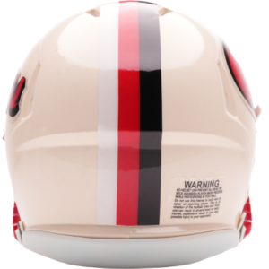 Based on one of the most popular on-field designs, this Speed Mini football helmet is made specifically for fans of the San Francisco 49ers and blends modern performance with classic style. Part of the Retro Collection, it draws inspiration from the 70s and 80s, honoring the team’s historic past with a cream gloss shell finish, team-colored face mask, and a three-color top stripe in team colors. The team logo appears on the right side of the helmet, while the team name is displayed on the left in a retro-inspired font. At approximately 5.5 inches tall, this authentic-size display helmet is perfect for football fans and ideal for autographs. It features a mini Speed shell, S2BD-SW-SP face mask, 4-point chinstrap, and official paint and decals, making it a standout piece for collectors and fans who appreciate a touch of nostalgia in their game-day style. The perfect collectible or gift! SKU: 8060348
