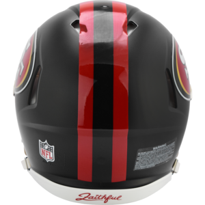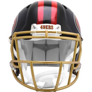 Based on one of the most popular on-field alternate designs, this collectible Speed Authentic football helmet is made specifically for fans of the San Francisco 49ers. At approx. 11 in. tall, this authentic size display helmet is perfect for all football fans and great for autographs. The helmet features a large size Speed shell, the S2BD-SW-SP face mask, a 4-point chinstrap, and official paint and decals. The perfect collectible or gift! SKU: 8059956